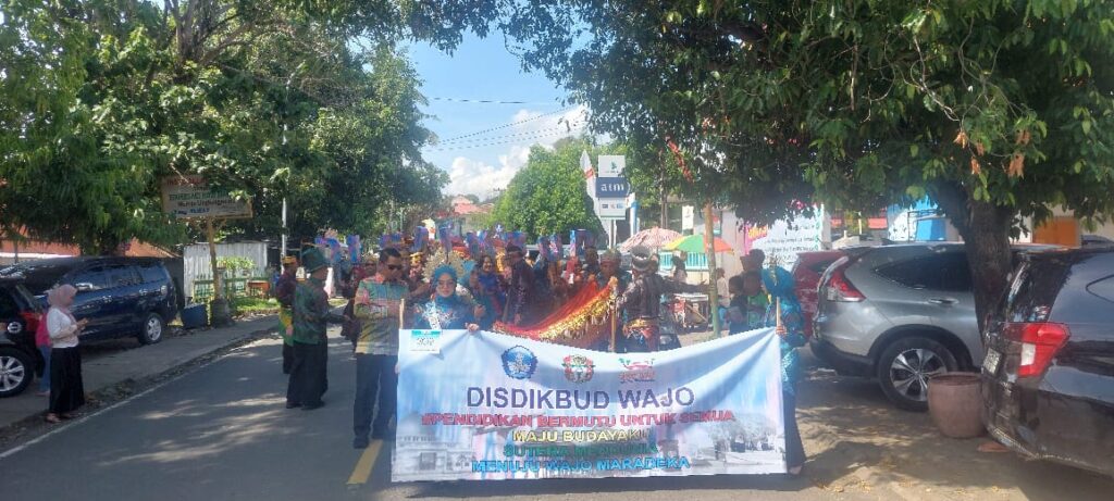 WAJO – Dinas Pendidikan dan Kebudayaan (Disdikbud) Kabupaten Wajo turut serta memeriahkan gelaran akbar Sengkang Silk Fashion Carnaval. Kegiatan ini merupakan undangan partisipasi langsung dari Bupati Wajo, yang penyelenggaraannya dikoordinasikan oleh Dinas Pemuda, Olahraga, dan Pariwisata (Disporapar) Kabupaten Wajo.