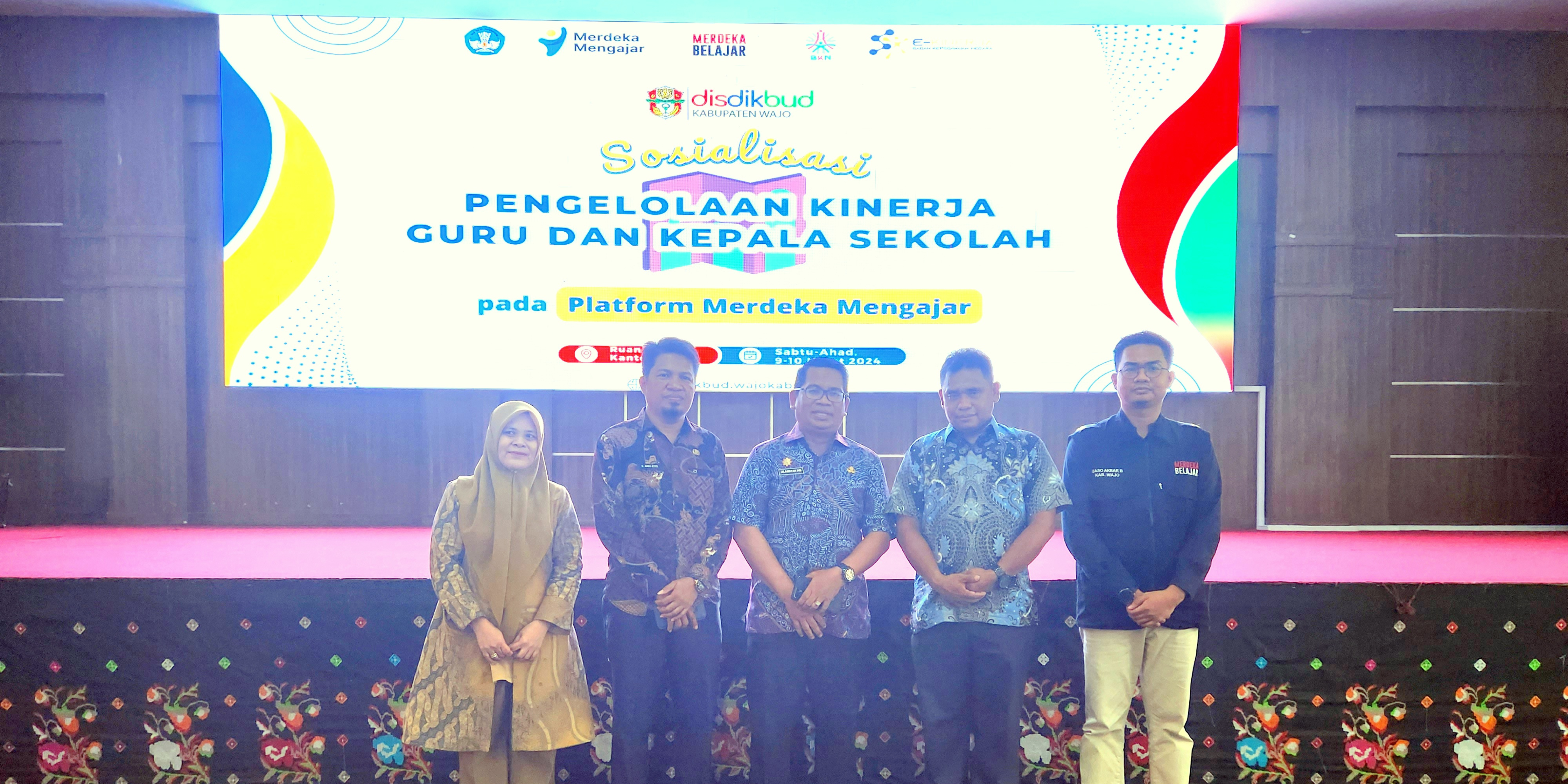 Dinas Pendidikan dan Kebudayaan Kabupaten Wajo menyambut baik Surat Edaran dari Kemdikbudristek tentang Pengelolaan Kinerja Guru dan Kepala Sekolah yang dilakukan di PMM. Dalam hal ini, Disdikbud Kab. Wajo melakukan sosialisasi pada tanggal 9 – 10 Maret 2024 dan bertempat di Ruang Pola Kantor Bupati Kab. Wajo. Kegiatan dibuka oleh Kepala Dinas Pendidikan Drs. H. Alamsyah, M.Si. dan Sekertaris Dinas Pendidikan Yahya, S.Sos. M.Si.